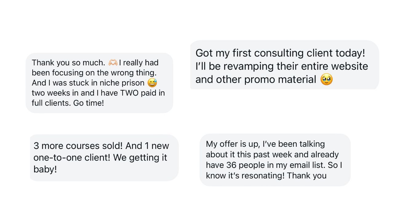 This is an identity shift: from “I have so many ideas” to “I launch with confidence.”